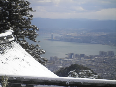 昨日からの雪で大文字が白抜きになっています。 |