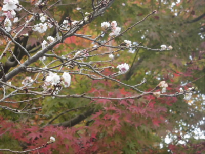 狸谷不動への分岐 ここから、狸谷へおりて、本堂に近い左にコースを取りました。 |